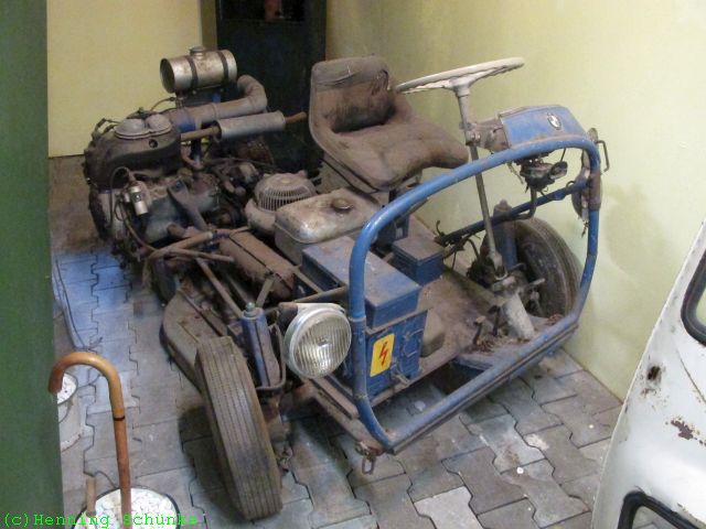 Ein findiger Tankstellenbesitzer hat daraus einen Schneepflug und Kehrmaschine gemacht. Zumindest beim Wintereinsatz musste man sich warm anziehen.
