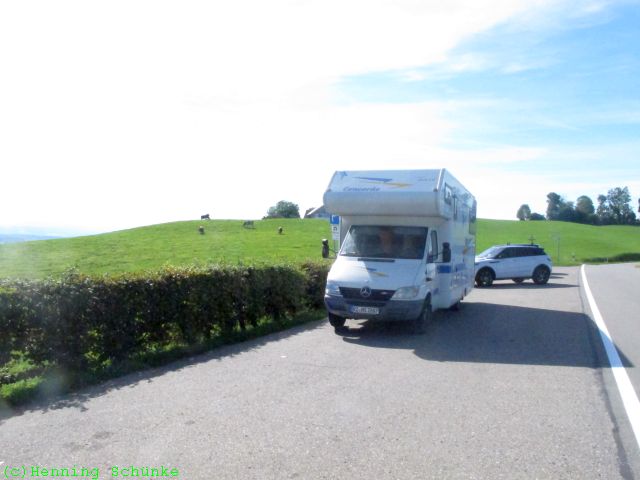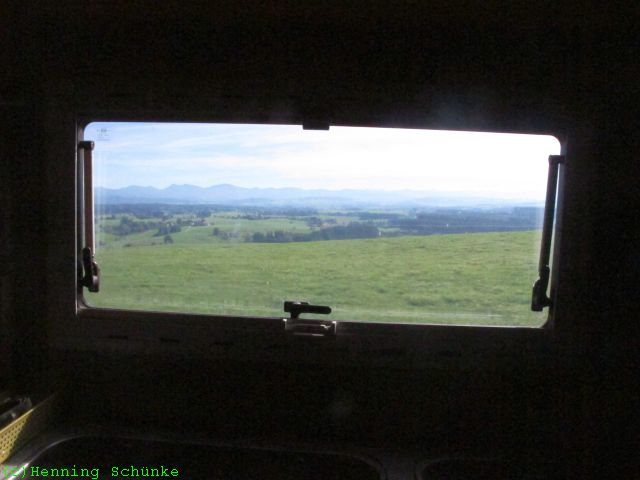 Nächste Station, noch immer in Baden-Würtemberg, ist dieser Platz mit Aussicht über die Alpen an der Siggener Höhe. Die Aussicht aus dem Küchenfenster ist doch schon mal vielversprechend.