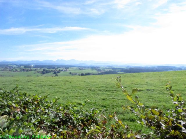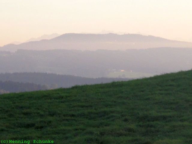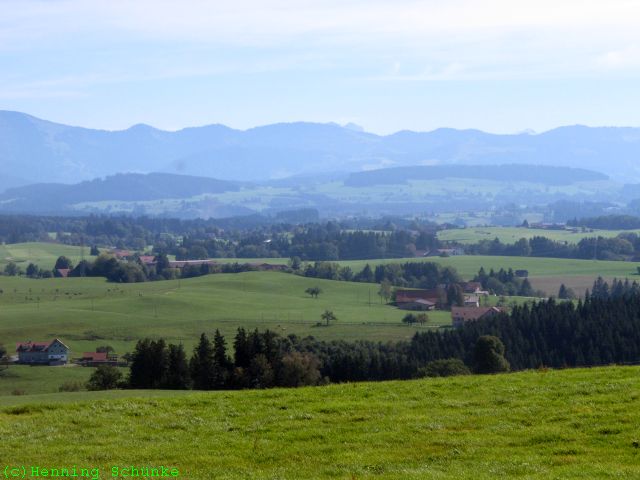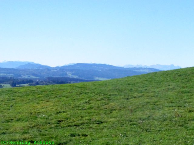 …und über die Hecke lugt. Schon echt schön, Allgäu eben. Nur leider ist es Richtung Bodensee (rechts im Bild) ziemlich dunstig.
