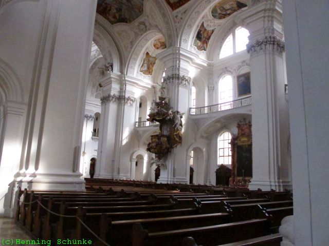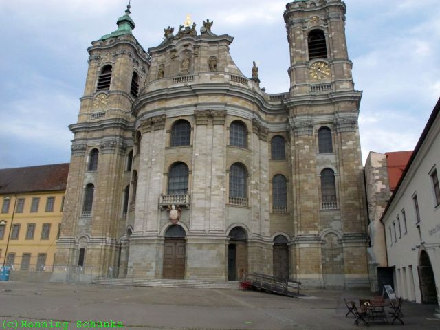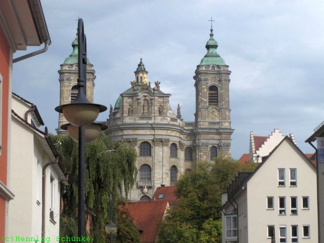 Das ist tatsächlich mit 102m Länge und einer Kuppelhöhe von 67 Metern das größte barocke Kirchenbauwerk in Deutschland und nördlich der Alpen. Ich komme auch rein…