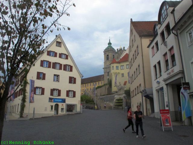 Der Bau im Hintergrund nennt sich Fruchtkasten. Das war früher der Getreide- und Weinspeicher des Klosters. Heute ist eine Bibliothek darin.
