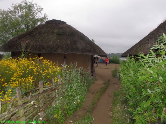 Innerhalb des Ringwalls standen hunderte reetgedeckte Häuser der Wikinger. Sieben Stück davon hat man rekonstruiert, ungefähr dort, wo das Zentrum des Ortes war.