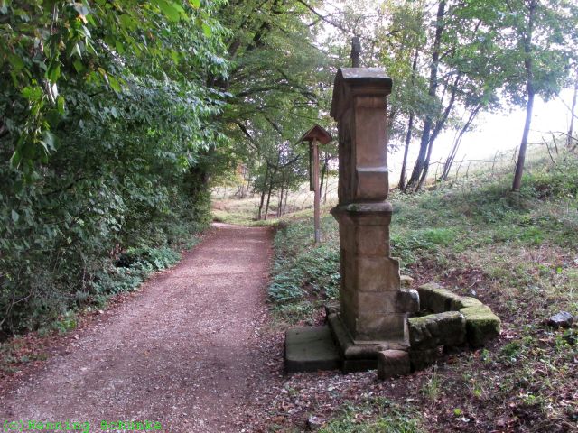 Vom Wäschewaschen und auch aus der Sauna sind keine Bilder überliefert, doch nach insgesamt sechs Tagen an der Therme bin ich etwas von der vorgegebenen Richtung abgewichen und zum Wanderparkplatz unterhalb der Gügelkirche bei Schesslitz gefahren. Hier wollte ich eine Wanderung schon immer in Angriff nehmen, nämlich den Weg zur Gügelkirche. Wobei Wanderung schon ein großes Wort ist für die rund 1.000m durch den Wald…