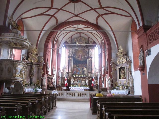 Unterhalb des Chores befindet sich eine Grotte, die ist diesmal aber abgesperrt, dafür komme ich hinein in die dem heiligen Pankratius gewidmete Kirche.