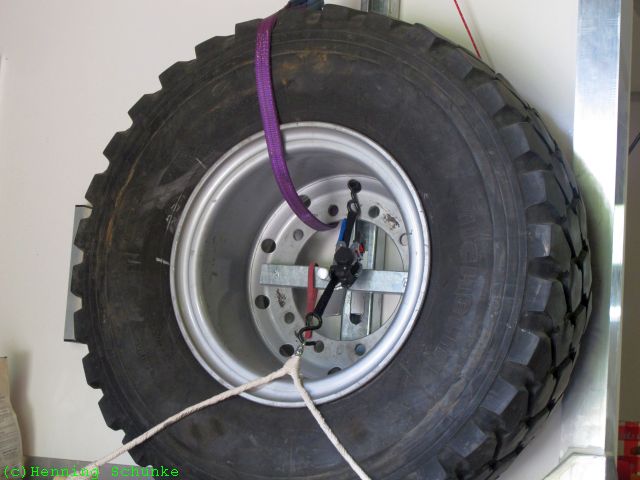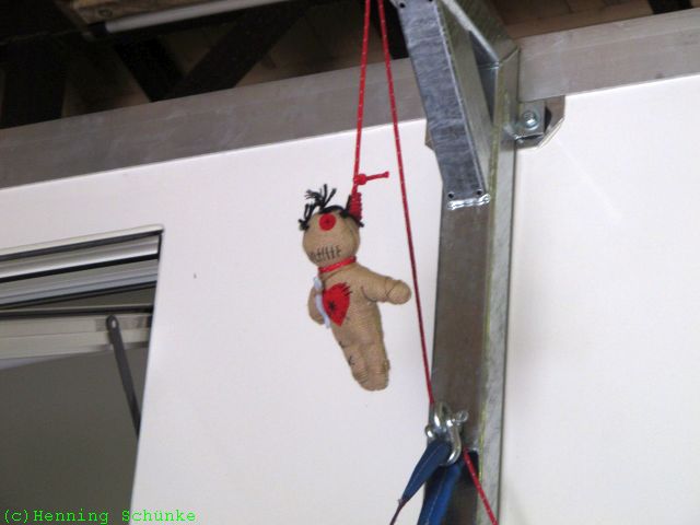 …und um die mit einem Gewicht von immerhin 185kg auch vom Reserveradhalter zu wuchten, gibt es einen kleinen Ausleger, an dem zur Zeit das EiVoodooLa hängt.