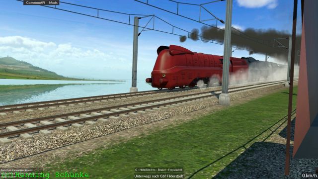 Stromlinen-Dampfloks der Baureihe 03.10 mit einem Schnellzug, diesmal aufgenommen aus einem Güterzug heraus.