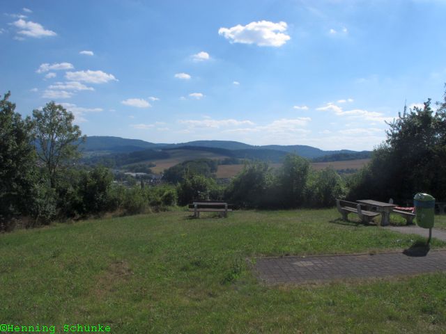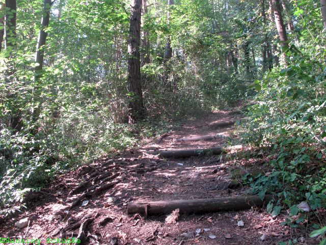 Später habe ich mir dann gedacht, dass ich doch mal diesen Hörselberg erklimmen sollte. Im Wald würde es ja auch schattig und nicht so heiß sein. Das war allerdings ein Trugschluß und auf einen Berg geht es nunmal bergauf. Etwa 125 solcher Stufen…