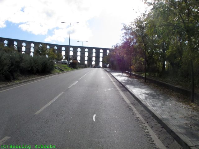 Auf dem Weg zum Aquädukt von Elvas, Portugal im November 2016.