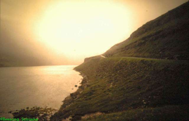 Von Hanstholm in Dänemark ging es mit der alten Norröna zunächst auf die Färöer-Inseln, anschließend nach Island. Die Pause auf den Färöer ergab sich aus dem damaligen Fahrplan des Schiffs, das hier alle Islandfahrer ausgeladen hat, nach Bergen in Norwegen gefahren ist, um nach drei Tagen wieder in Thorshaven auf den Faröer zu sein. Dann ging es weiter nach Seydisfjördur auf Island.