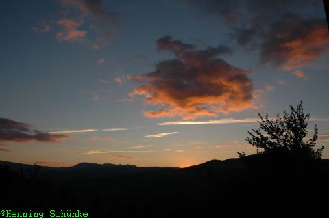 Ich finde bald ein Plätzchen irgendwo zwischen den Dörfern Antica und Saudi an einer Schotterstraße mit Blick über die Berge und in den Himmel.