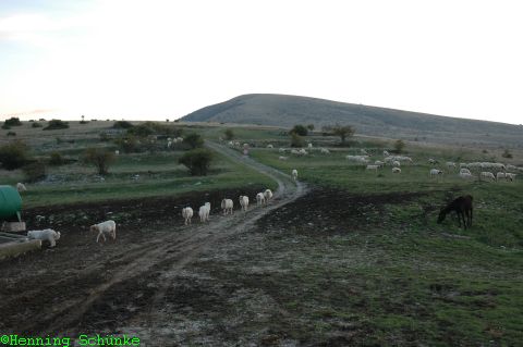 In der Nähe wachsen Brombeeren und als ich vom Sammeln wiederkomme, zieht gerade eine Schafherde am Auto vorbei.