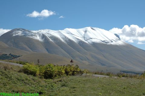 Die Berge um mich herum sind die Monti Sibillini und manche davon sind auch schon vom ersten Schnee bedeckt.