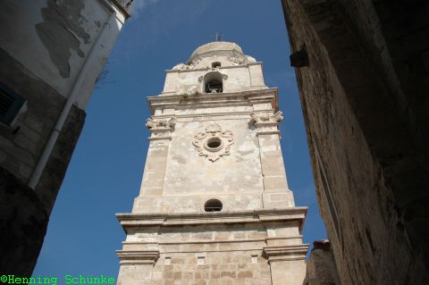 Dann wird der Ort zu Fuß erkundet. Ich komme zuerst zur Neustadt auf dem nördlichen von zwei Felsvorsprüngen, auf denen die Stadt erbaut ist. Die Häuser sind hier nicht wirklich neu, aber die Straßen verlaufen sehr unitalienisch schnurgerade und stoßen im rechten Winkel aufeinander. Dafür geht es aber oft bergauf und bergab, auch mit Treppen.
