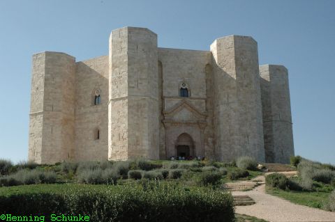 Die Gegend ist sanft gewellt, es gibt kaum Dörfer oder gar Städte aber große Felder und immer wieder Ruinen von verlassenen Höfen. Das Castel del Monte steht auf einem der höheren Hügel und ist schon von weitem zu sehen.