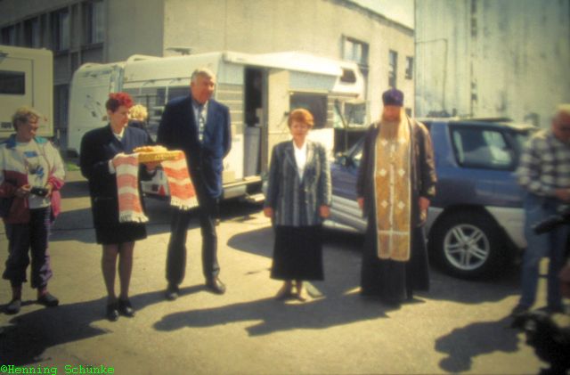 Unser erstes Etappenziel, das Hotel „Intourist“ in Brest war auch nicht mehr fern und so konnten wir schon kurze Zeit später die Segnungen eines orthodoxen Popen mit Rauschebart und Lederjacke entgegennehmen, der den Segen des Herrn auf uns und unsere Fahrzeuge mittels Weihwasser aus der Waschschüssel eines Mitreisenden herabflehte.