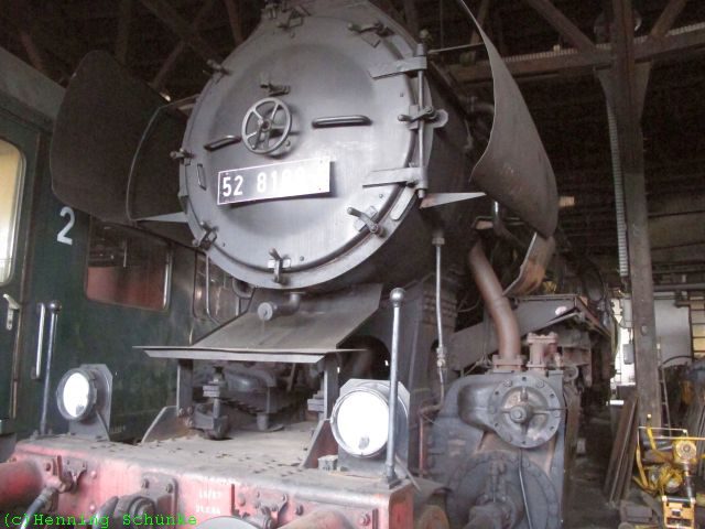Hallo zusammen, es ist ja noch von einer eisenbahntechnischen Exkursion erzählen. In Staßfurt, südlich von Magdeburg, ist ein Bahnbetriebswerk aus Reichsbahnzeiten erhalten geblieben, also aus der Zeit vor dem zweiten Weltkrieg. Dort kümmern sich die Eisenbahnfreunde Staßfurt um diverse Fahrzeuge aus der Zeit von etwa 1930 bis zum Ende der DDR. Manche der Fahrzeuge gehören