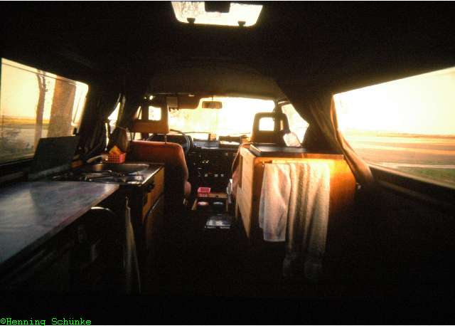 Aber zum richtigen Wohnmobil fehlte noch eine zweite Batterie und eine Heizung. Beides gab es vom Boschdienst. Die Heizung war eine Eberspächer Luftheizung, der ich sehr schnell den Spitznamen „Heizwecker“ verpasst habe, weil sie infernalischen Lärm veranstaltete. Aber die Bude wurde warm, wenn auch nur einmal pro Tag, denn für einen zweiten Zündversuch ohne Nachladen war die Batterie zu schwach. Später flog die Absorberkühlbox raus und wurde durch eine Kompressorbox mit Kältespeicher ersetzt.